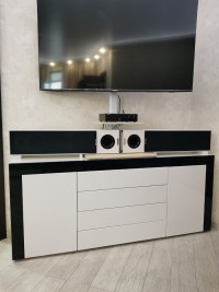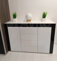 Две изящных распашных дверцы, словно хранители ваших секретов, и четыре вместительных выдвижных ящика. Внутри – продуманная организация пространства: за каждой дверцей скрывается удобная полка, идеально подходящая для хранения вещей, которые вы хотите всегда иметь под рукой. Больше никакого хаоса – только порядок и гармония!