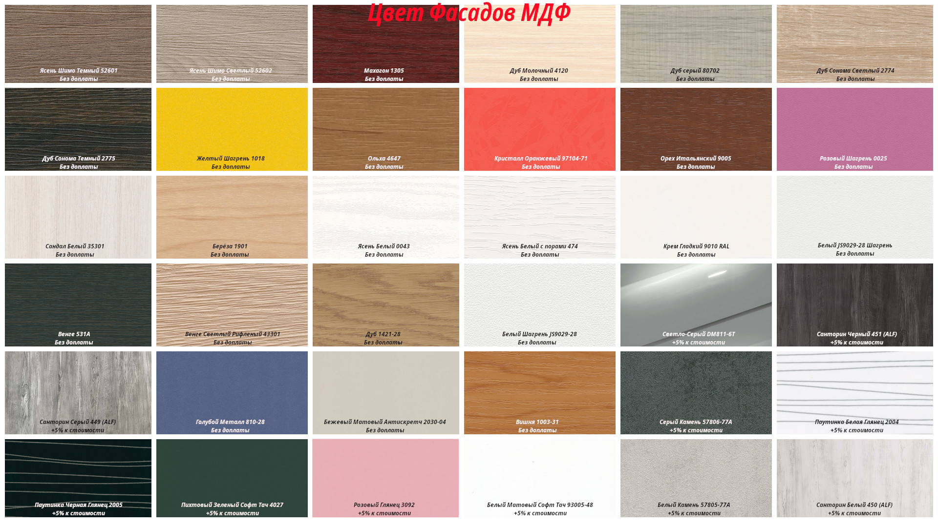 Выберите цвет, который идеально впишется в вашу цветовую гамму. Мы предлагаем широкий спектр матовых и глянцевых оттенков, от классической белой до насыщенной графитовой, от нежного лавандового до благородного орехового.