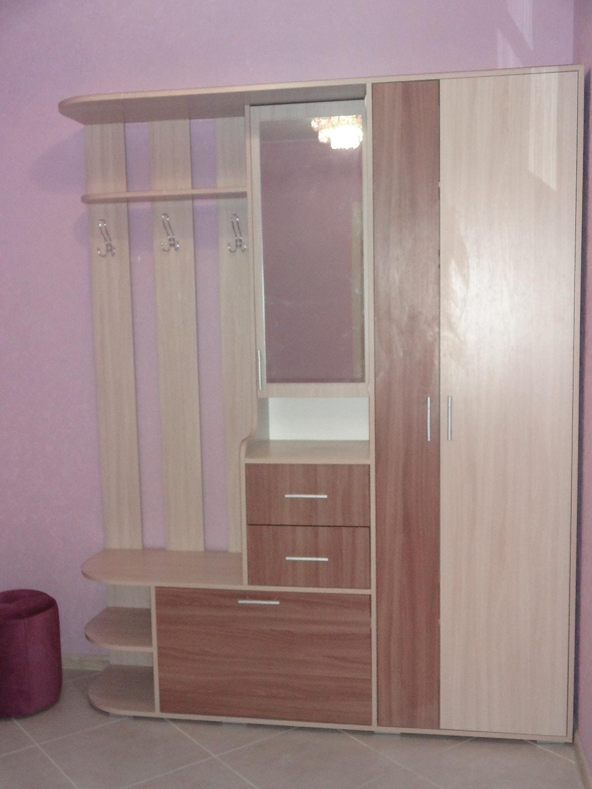Удобные выдвижные ящики: Хранение мелочей – больше не проблема! В ящиках удобно разместить ключи, перчатки, шарфы и другие аксессуары. Гладкое скольжение ящиков обеспечит комфорт в использовании.