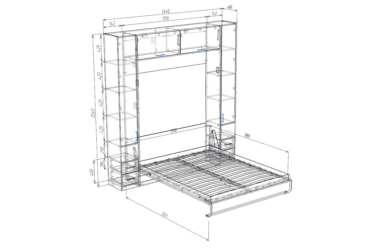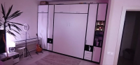 Шкаф-кровать трансформер Лиана — функциональная и элегантная модель, идеально подходящая для оформления гостиной, спальни или студии. Современная стенка выполнена в контрастных древесных тонах и сочетает стильный дизайн с продуманной системой хранения. В конструкции предусмотрены распашные отделения, ниши, антресоль и выдвижные ящики для мелочей. Центральный элемент — откидной модуль с вертикальным механизмом, который легко превращается в комфортное спальное место.