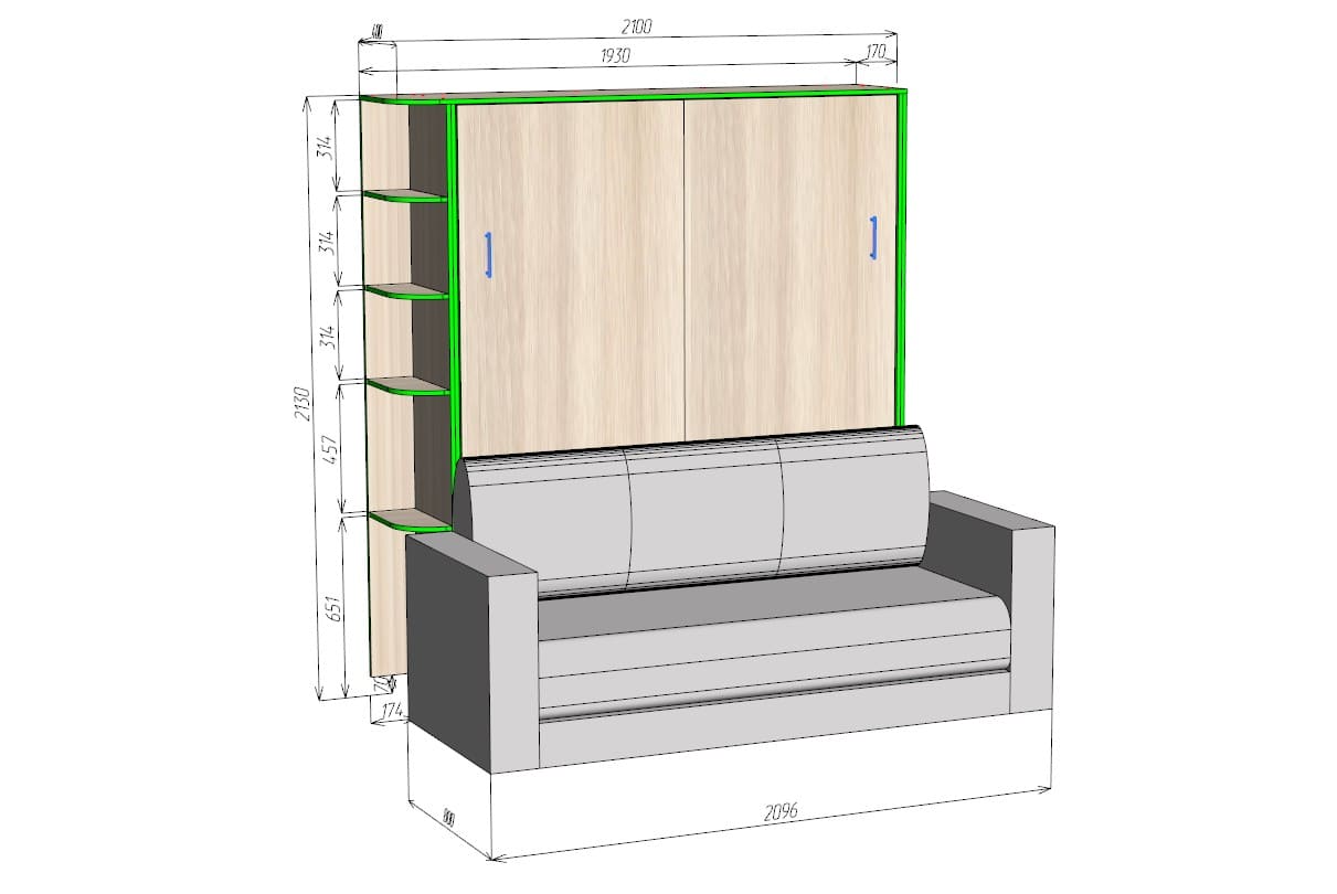 Купить шкаф-кровать с диваном Изи вы сможете в нашем интернет-магазине с подбором подходящих размеров и оттенков.