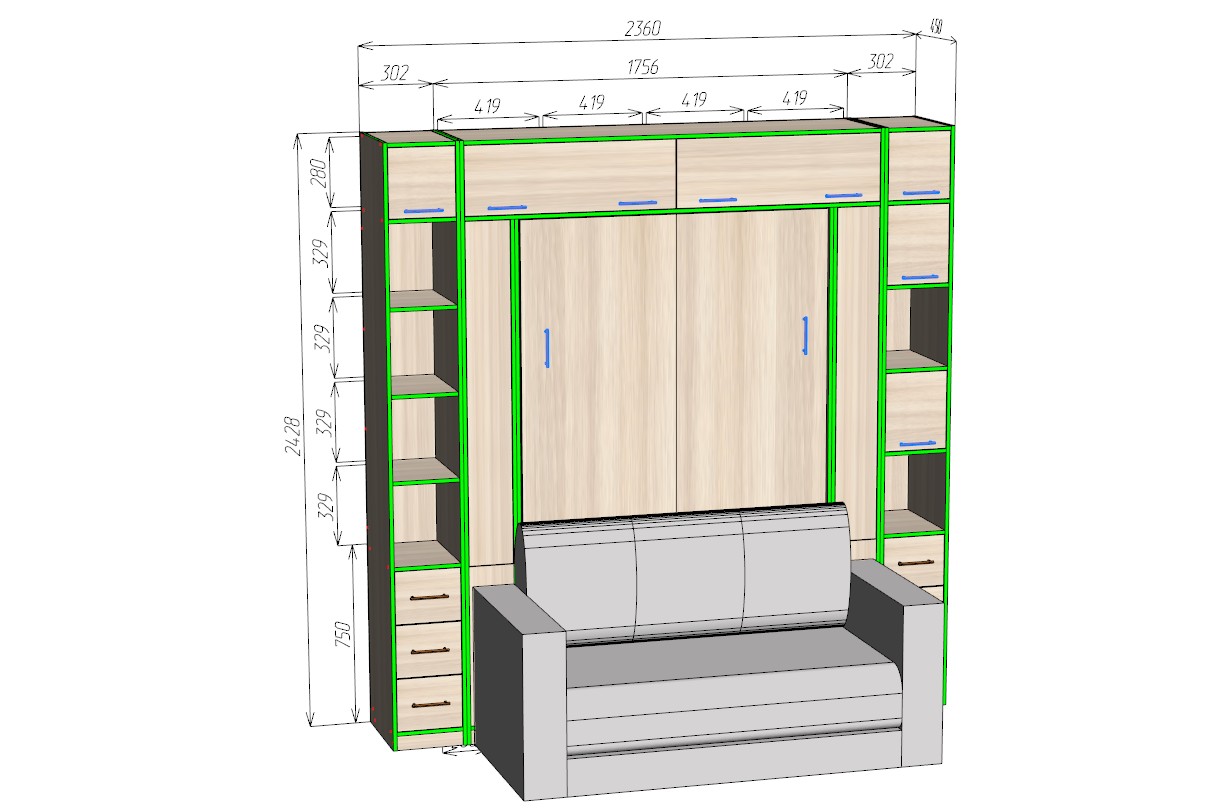 Купить шкаф-кровать с диваном Изи-6 с подбором размера и цвета можно в нашем интернет-магазине.
