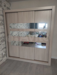 Двухдверный дизайн с зеркалами: Две раздвижных дверцы с элегантными зеркалами не только обеспечивают удобство использования, но и визуально расширяют пространство, добавляя света и воздуха в комнату. Зеркала – это не просто функциональный элемент, а стильный акцент, который преображает дизайн вашего помещения. Размер зеркал, разумеется, будет соответствовать габаритам дверей шкафа.