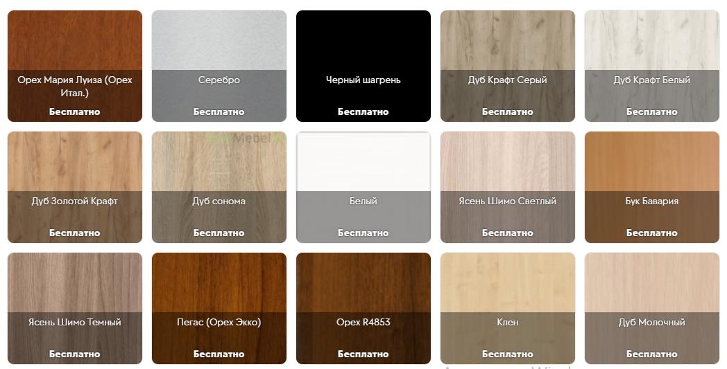 Цвет корпуса и фасада ЛДСП