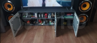 Три вместительные дверцы: За каждой из трёх распашных дверец скрывается удобная полка. Храните там всё, что угодно: плееры, диски, пульты, игры – всё будет под рукой, но аккуратно спрятано от взглядов.