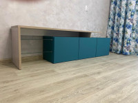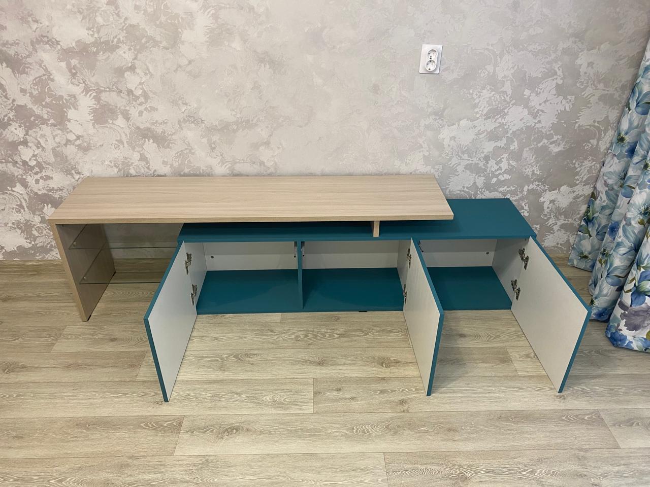 Три распашные дверцы: Просторное внутреннее пространство, идеально подходящее для хранения медиа-плееров, приставок, дисков и многого другого. Размер каждой дверцы рассчитывается индивидуально под ваши потребности.