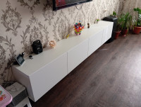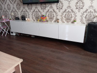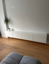 В целом неплохая тумба, фасады из софт-тач МДФ, сборка относительно несложная если делать по инструкции, (попросил продавца и мне прислали видео) вся фурнитура была в сборе. Я поставил 2 толкателя на каждую секцию. Заднюю стенку из ДВП не ставил. Большая, вместительная, за свои деньги вполне неплохо.Отзыв