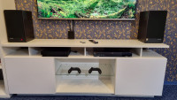 Размеры тумбы тщательно продуманы для оптимального размещения телевизора и другой техники. За двумя распашными дверцами скрываются просторные отделения для хранения вашей техники, игровых приставок, дисков и других мелочей. Более того, благодаря качественной фурнитуре, дверцы открываются и закрываются плавно и бесшумно.