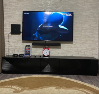 Модель отличается не только привлекательным внешним видом, но и удобной конструкцией. За распашными дверцами расположены вместительные полки, на которых можно аккуратно разместить ТВ-приставку, роутер, игровые аксессуары, документы и другие необходимые мелочи. Закрытые секции помогают поддерживать порядок и сохраняют визуальную легкость пространства.